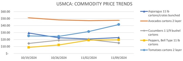 Movement from Mexico crossings through Nogales, Arizona is expected to increase. Supplies are heavy. Trading is slow. Prices are much lower. 1 1/9-bushel cartons medium are 10.95-12.95, fair quality is 7.95-10.95, ordinary quality is 5.95-8.95; small are mostly 7.95-9.95; large are mostly 9.95-10.95. Cartons 24s are 4.95-7.95, 36s are 5.95-9.95. Quality is generally good. Movement from Mexico's crossings through Texas is expected to decrease. Trading early was moderate, and late was fairly slow. Prices are much lower. 1 1/9-bushel cartons medium are mostly 12.9513.95, fair quality are mostly 9.95-10.95, ordinary quality are mostly 6.95-7.95, large are mostly 11.95-13.95. Quality and condition are variable.