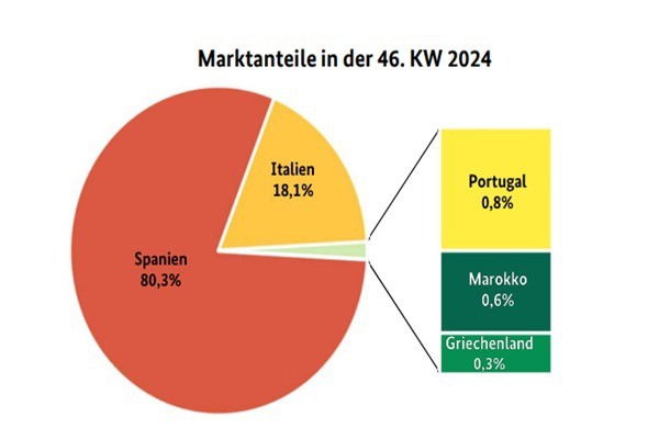 Spanish deliveries dominated the scene and gained noticeably in influence. Their quality was generally convincing, but defective specimens were also found on various occasions. Berlin reported real clearance prices, as the Spanish fruit often showed signs of poor condition.