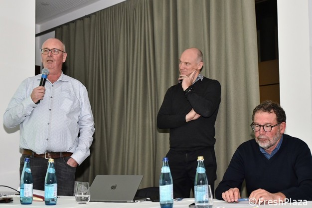 Kris Wouters (Wouters Fruit), Tony Martin (CEO di Prevar) e il ricercatore Richard Volz (Plant & Food Research).