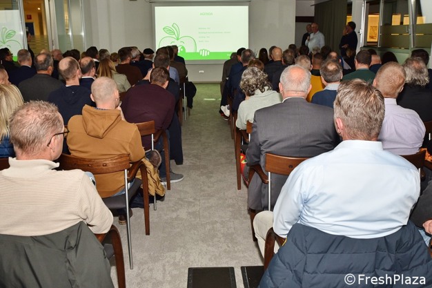 The public presentation, so crowded that organizers had to provide a larger room, was expertly delivered by Kris Wouters, breeder Dr. Richard Volz (Plant & Food Research), and, with a surprise unveiling of the brand name, Tony Martin, Chief Executive of Prevar.