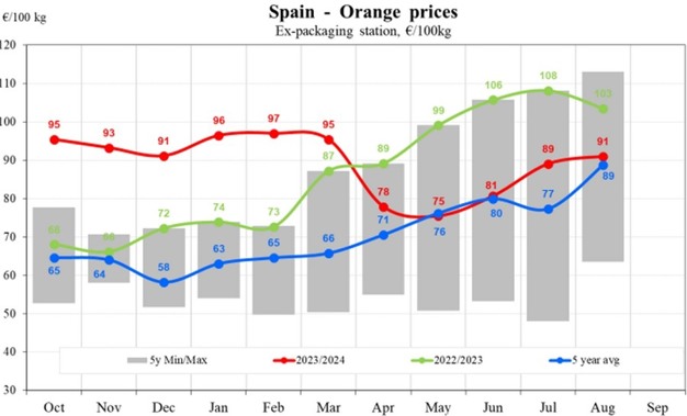 Spain and Italy's contributions to the EU's average price trends remain critical, given their significant roles as major orange producers. The broader price declines across the EU emphasize challenges such as increased competition from imports and climatic impacts on yields.