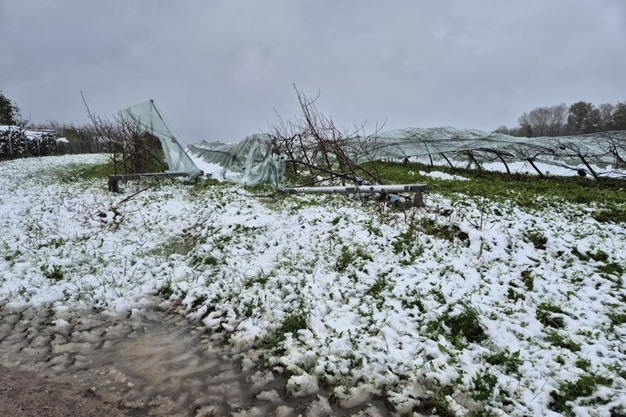 "The snowstorm that hit central western France has had a significant impact on some of the apple orchards in the Loire Valley, particularly in the departments of Sarthe, Indre-et-Loire and Maine-et-Loire. The weight of the snow on the anti-hail nets has flattened and broken trees, even destroying some orchards," explains the French Apple Pear Association (ANPP). Although it is still too early to put an exact figure on the damage, an initial assessment should be available this week.
