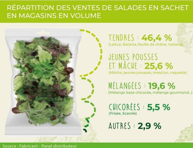 "Since the first products hit the shelves in the early 80s, ready-to-eat fresh salads and vegetables have gradually become an everyday staple. The French market has seen volumes multiply by almost 5 in 30 years. In 2023, France produced almost 109,000 tons of ready-to-use fresh salads, vegetables and aromatic herbs, 80% of which were marketed in bags," according to the Union of Manufacturers of Ready-to-use Fresh Produce (SVFPE) during a press conference held on November 12th. On the agenda: the place of ready-to-use fresh vegetables in the daily lives of the French and the drafting of a corporate social responsibility charter to "reinforce responsible practices."