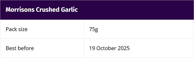 Morrisons is recalling Morrisons Crushed Garlic because an ingredient has been omitted from the product that prevents microbiological growth and therefore presents a potential risk to consumers.