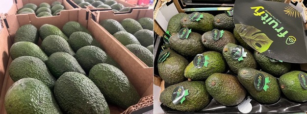 On the left: Hass avocados from Morocco. On the right: RTE version
