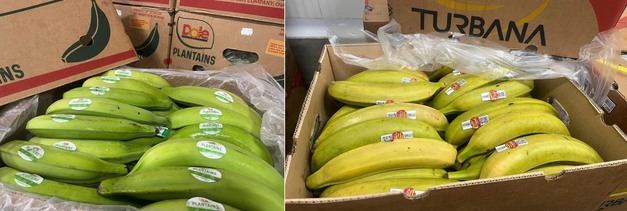 On the left: green plantain from Ecuador; on the right: ripe plantain from Colombia