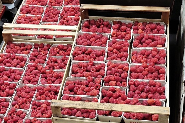 Jörg Huber grows raspberries and cherries on around one hectare each. Most recently, the raspberry varieties Mapema, Kweli, Enrosadira and Clarita were offered. Wholesale prices were around 12 EUR/kg.
