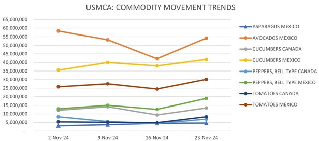 Movement from Mexico crossings through Otay Mesa, California is expected to remain about the same. Available supplies are very light as most present shipments are from prior bookings and/or previous commitments. Trading is slow. Prices are generally unchanged.