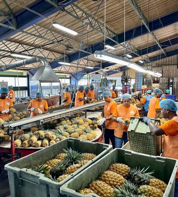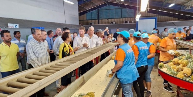 Joël Boyer's latest trip to Reunion Island at the start of the harvest was also an opportunity to inaugurate the new pineapple packaging line. This is a state-of-the-art facility. "Weighing is now done fruit by fruit, with perfect traceability enhanced by a cardboard label held in place by a cotton thread to comply with the AGEC law. We were very honoured to receive Hughette Bello, president of the Reunion region, along with a number of elected representatives, including the chairmen of Arifel, armeflhor and OP anafruit, the director of the Ddaf and a number of partners involved in our business."