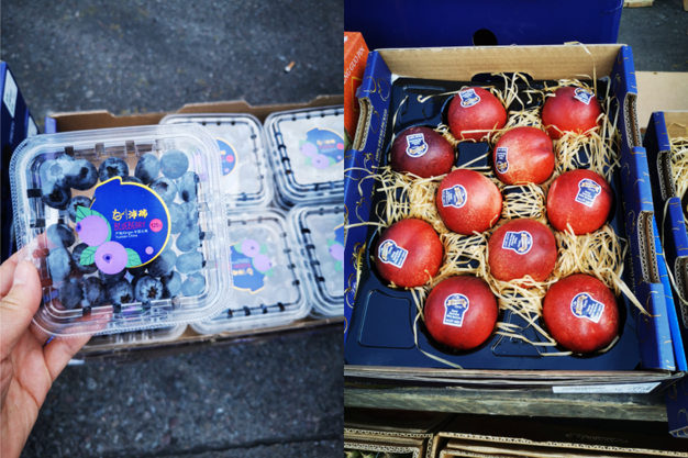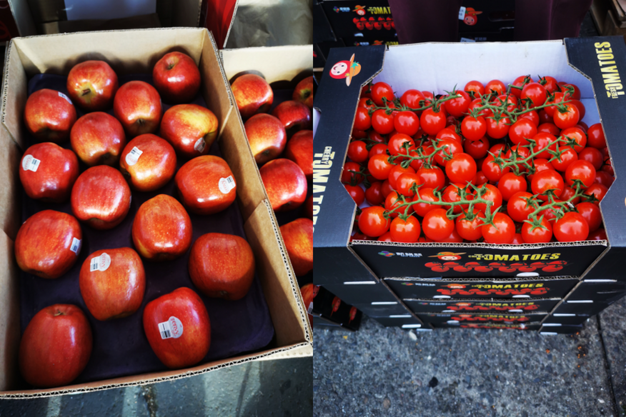 Left: American Envy apples; Right: Shandong-produced tomatoes on the vine