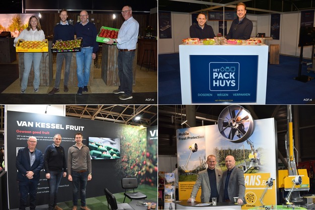 Clockwise from top left: Devos Group and Wouters Fruit, Het Packhuys, Swift International and Van Kessel Fruit