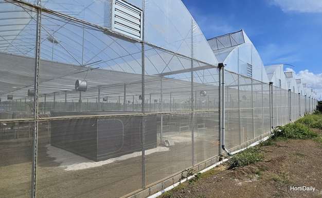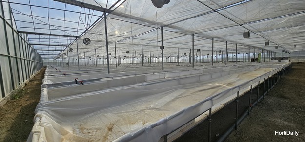 To manage greenhouse temperatures, shade cloths, 40 extractors, and 80 fans create a microclimate of 27°C above the tables, with water temperatures maintained at 22-24°C. "Without these measures, temperatures inside could reach 43°C. While plants could tolerate this, it would be uncomfortable for workers," Edward explains.