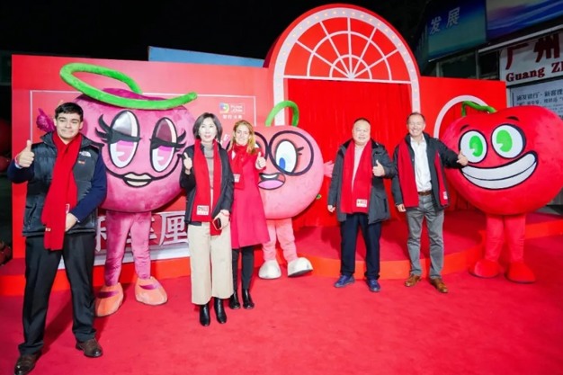 On December 8, the Chilean Fruit Exporters Association (Frutas de Chile) hosted a grand ceremony at the Guangzhou JNH Wholesale Market to mark the arrival of the first direct vessel of Chilean cherries for the 2024/25 season. This event symbolized the official launch of Chilean cherry sea transportation for the season. Distinguished attendees included Iván Marambio, president of Frutas de Chile; Claudia Soler, executive director of the Chilean Cherry Committee of Frutas de Chile; Zheng Nanshen, general manager of Guangzhou Jiangnonghui Market Service Management Co. Ltd.; Zhao Zhi, vice general manager of Guangzhou Jiangnonghui Market Service Management Co. Ltd.; and Gonzalo Rubilar, ProChile's Trade Commissioner in Guangzhou.