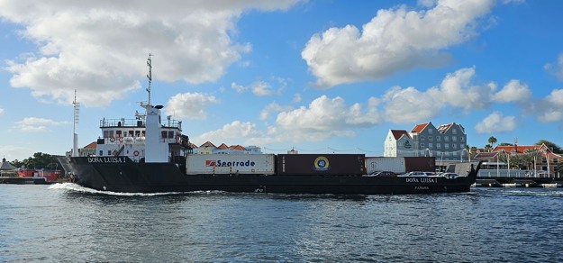 The transshipped containers for Bonaire are put on a chassis in Curaçao and then sailed to the island, because they don't have a crane there