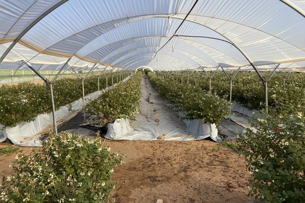 Most raspberries are still grown in the ground in Spain, using a "simple system of the same tunnel type". For blueberries, there is a certain unit with two rows in the tunnel. The cultivation of strawberries, blueberries, and raspberries is very similar. Often there are also two rows with greenery for a better climate in the houses. This also has the advantage that the company can establish open breeding of beneficial insects to prevent lice.