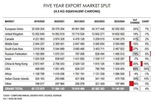 Source: SATI 2024 Statistics & Perishable Products Control Board (PPECB)