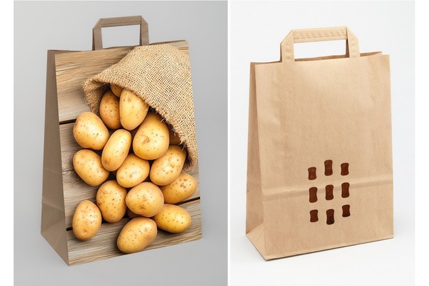 Left: Printed potato carrier bag. Right: Potato carrier bag with perforation.