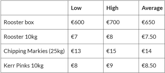 Retail demand and home consumption have been slightly subdued since the holiday period, but this should begin to pick up. There should not be downward pressure on markets as yields are average and stocks should not be in excess following last year's shortages. The availability of seed potatoes for the upcoming season is a concern.