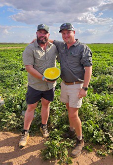 Right: Konrad Marais from Woolworths with Jandri Venter, Rijk Zwaan, seeing how Brazilian watermelon growers are doing it