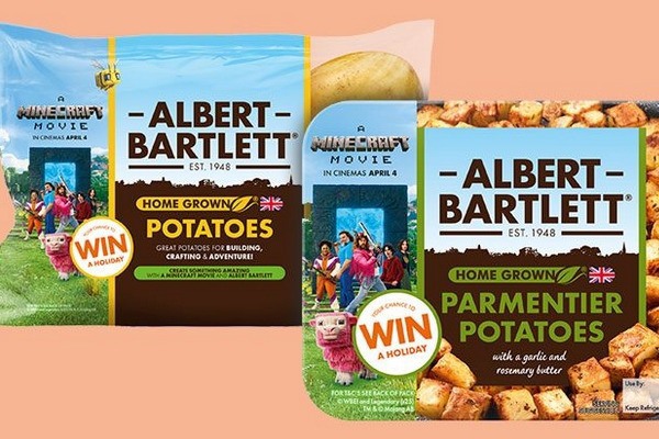 Albert Bartlett, based in Airdrie, collaborates with Warner Bros for an on-pack promotion linked to 'A Minecraft Movie', released on 4 April. This marks the brand's inaugural on-pack promotion spanning fresh and chilled potato ranges. Albert Bartlett Original Rooster and Butter Gold in fresh, along with Parmentier Potatoes in chilled, feature movie imagery.