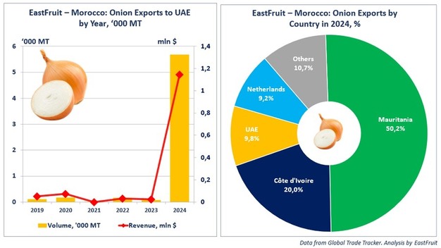Morocco's onion export strategy has shifted its focus to the United Arab Emirates (UAE), according to EastFruit. In 2024, Moroccan exporters dispatched over 5,500 tons of onions to the UAE, valued at $1.1 million, marking a new milestone in bilateral trade.