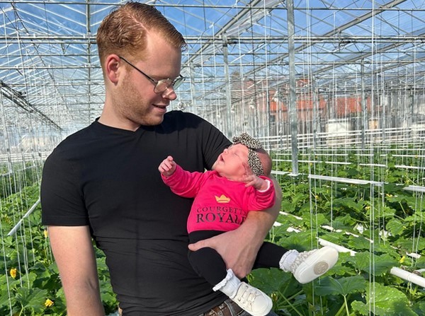 Guus Zwinkels is proud not only of the products but even more so of his newborn daughter Jill.