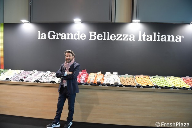 Leonardo Odorizzi with a small selection of La Grande Bellezza Italiana brand products behind him