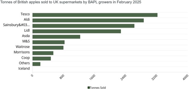Every month, British Apples & Pears collate data from our British Apple & Pear growers on the number of British apples they sell to UK supermarkets. The latest data is below.