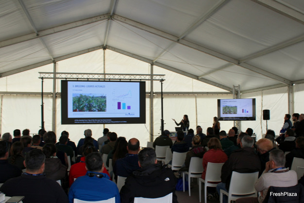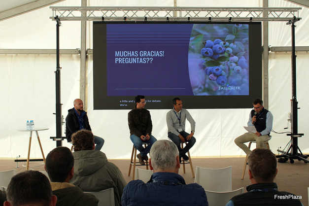 After the visit to the greenhouses, it was time for the technical presentations in which the Fall Creek team outlined some fundamentals about the company's work and its strategy for future developments. When it comes to genetics, the focus is going to be on pink fruit (already marketed in the U.S.), plants with lower water requirements, or seedless blueberries. They are also developing guides to allow growers to obtain the highest yield from each variety.