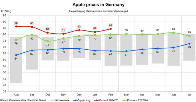Apple prices across Germany, France, Italy, and Poland continue to reflect varied market dynamics during the 2024/2025 season.