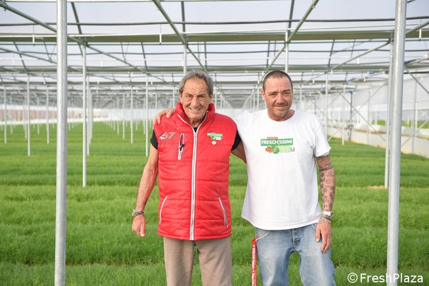 © Cristiano Riciputi | FreshPlaza.comPatrizio and Emile Fellini in the agretti greenhouse