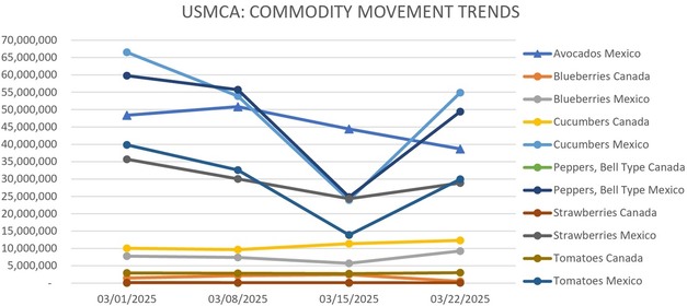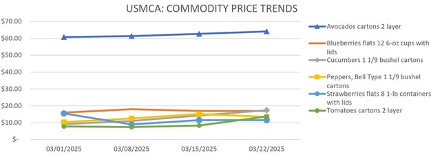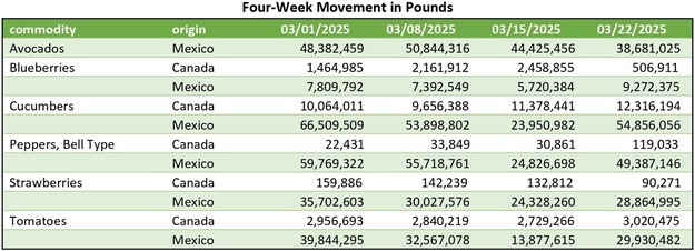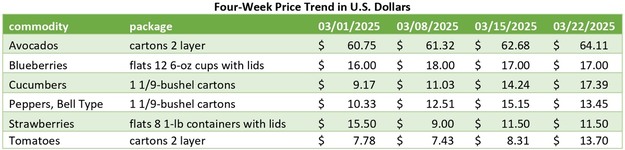 Produce movement and pricing trends remain mixed across key categories as spring approaches. While avocado and blueberry volumes from Mexico are steady, strawberries from Central Florida are beginning to decline seasonally. Meanwhile, cucumbers and green bell peppers from Mexico are seeing price fluctuations, and tomato shipments through Texas are increasing with notable price spikes. Here's a detailed look at the latest market activity.