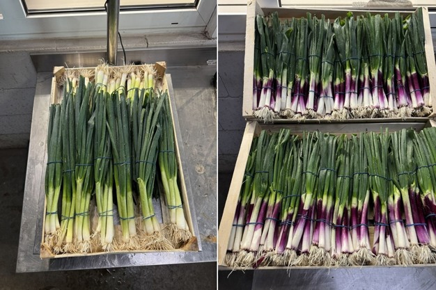 © FeSa Obst- & Gemüsehandels GmbH & Co. KG In week 12, the Palatinate spring onion harvest officially began. "There will supposedly be a small gap in the harvest when switching from the last winter spring onions, i.e., the overwintered 2024 seed, to the growing summer crop in June. We had to accept some damage due to frosts below -5 °C with the last sown spring onions of 2024, which were tiny going into the winter. Accordingly, the stocks have been severely thinned out, which is why we have to assume that yields will be reduced," reports Jochen Fehmel (r), managing director of the vegetable-growing company of the same name based in Mutterstadt. He goes on to say that the growing capacities for spring onions have remained almost the same as in the previous year.
