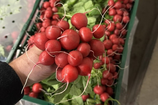 Not only outdoors, but also in the greenhouses of FeSa, harvesting is now underway. Since the end of calendar week 11, the radish harvest has been in full swing, while the strawberry harvest in protected cultivation is still lagging about 2-3 weeks behind. "We are experienced in radishes, but this is our first year harvesting strawberries. At the moment, things are looking good, and we expect a good strawberry yield from the first week of April. We start the radish season early in the greenhouse and then move smoothly into outdoor cultivation. We plan things a little differently for strawberries. We only harvest the red fruits that the plants offer us for about 6 weeks from the expensive greenhouse cultivation. Thereafter, a break is necessary before we can start again with a new set in the same area in September. This is a conscious decision: due to the high costs of the greenhouse, the low revenues of summer strawberries cannot be covered. That's why we exclude this seasonal period and rely instead on the fall harvest."