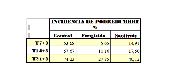© Sanifruit Table 2: Incidence of rot in each of the treatments following a three-day-at-20°C marketing simulation period after 7, 14, and 21 days of refrigerated storage at 1°C.