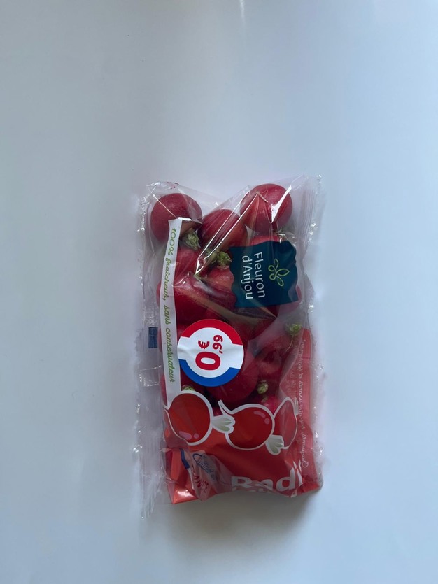 Another of Fleuron d'Anjou's flagship products is the bundled radish, which has already arrived on the shelves. "Large volumes have been available for about ten days now." Although the current cloudy weather "is not encouraging raw vegetable consumption, the season should be good, as sunnier forecast is announced for the coming days." While raw vegetables are best enjoyed in the summer, radishes are a true spring product. "Sales drop off during the summer period because of the arrival of summer products and also because the foliage does not hold well in the heat. Alongside the traditional radish bundles, the cooperative expanded its range a few years ago with the 0.99 euro [1.07 USD] bagged radish. "We offer two versions: the pink radish and the red radish, which is sweeter and less pungent." This product is becoming increasingly popular, both for its price and its format. "The bags are making headway on the shelves, because small portions of raw vegetables at less than 1 euro (1.08 USD), available all year round, remain a very attractive product for consumers."