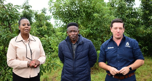 Shertina Maremane, head of the Land Bank in Limpopo, with Phillip Mulaudzi, general manager of Tshivhase Agridam Farm, and Zander Ernst, director of marketing & production at Allesbeste Boerdery