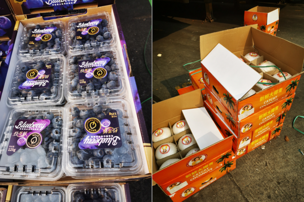 Left: Yunnan blueberries; Right: Vietnamese young coconuts