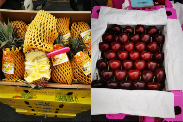Left: Hainan golden diamond pineapples; Right: Dalian cherries