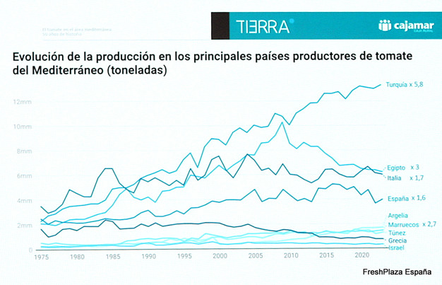 At the recent Tomeet congress, organized by Rijk Zwaan in Almeria, Carmen Cabrera, from the Cajamar Foundation, made an analysis of tomato production in the Mediterranean arc and its development over the last 50 years and mentioned the largest producers and exporters in the region.