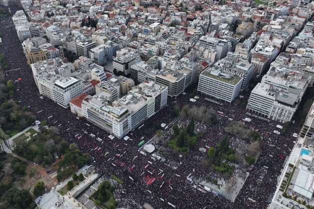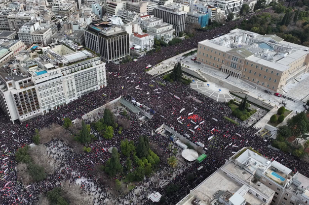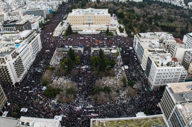 Syntagma Square in Athens, the capital's main square, during the strike rally on February 28. Credit: Pamehellas