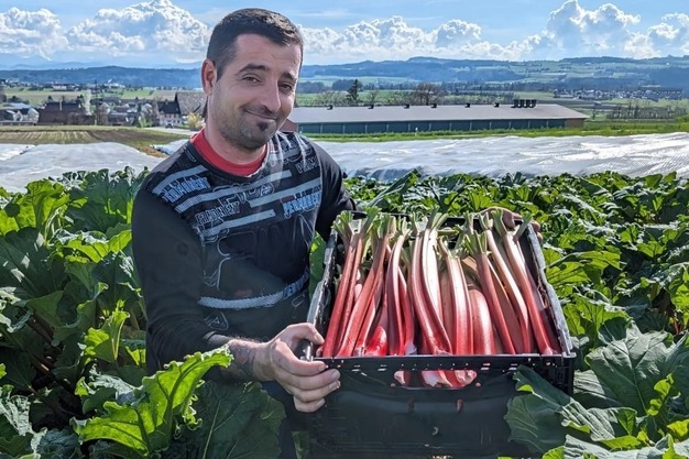 The delivery of the first Swiss rhubarb on April 5 officially heralded the start of the new season in the canton of Thurgau. "Due to the weather, we are starting the new season about ten days later than last year. For now, however, we expect to harvest almost the same amount as last year. Even though Dutch forcing rhubarb has been available again at slightly lower prices since last week, most customers, including retailers, specifically ask for Swiss produce," says Pascal Egger, who manages the family business together with his father and two brothers.