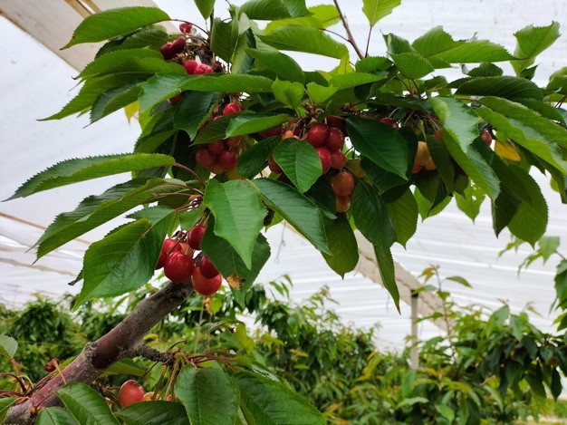The first harvest of greenhouse cherries began on 16 April 2025, later than planned, due to the less-than-spring-like weather of the past few weeks.