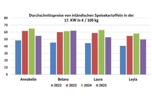 As expected, demand for table potatoes declined slightly after Easter. In some cases, sales fell short of expectations despite promotional campaigns by food retailers. Additional pressure is coming from the large supply of imported early potatoes. There is therefore no scope for price increases at present, even though storage costs and sorting losses are rising as storage times increase. Overall, however, supply and demand are balanced, so falling prices are also unlikely. Due to the continuing good weather conditions, planting is entering the final stages in this country. Most farms have already completed planting. Prices on the futures market continued to fall significantly. Prices are being weighed down by a very high supply of processing goods from Germany and abroad.