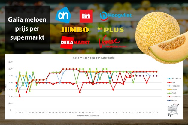 There are no significant price changes for Galia melons in week 18, which have remained constant for weeks. Notably, Galia melons have not been available online at Hoogvliet for the second consecutive week.