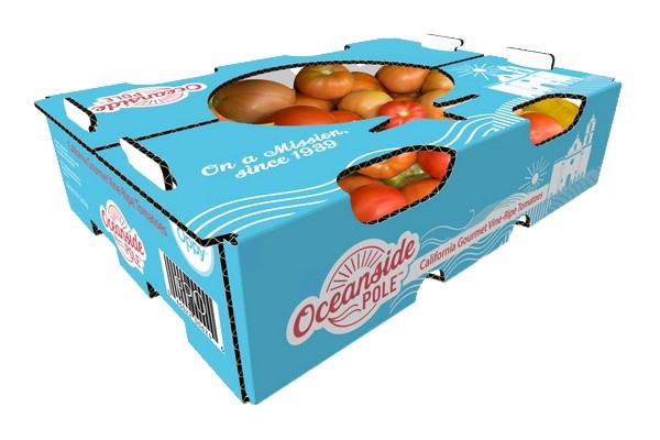 A 5 lb. box of Oceanside Pole tomatoes.