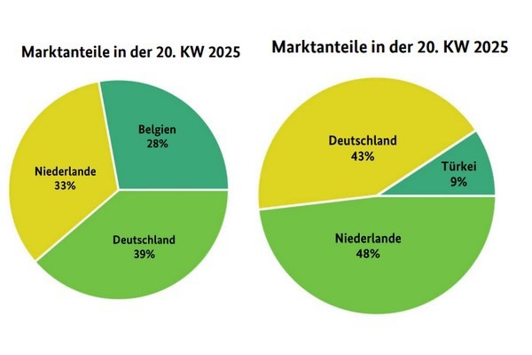 Auction prices in the Benelux countries also fell due to lower volumes. In most cases, the lower purchase prices were passed on to customers during the reported week, which explained the falling prices. The price reductions did, however, accelerate subsequent marketing in some cases, enabling traders to reduce stocks and avoid surpluses. Only small domestic products were occasionally in short supply, causing prices to rise slightly in some places.