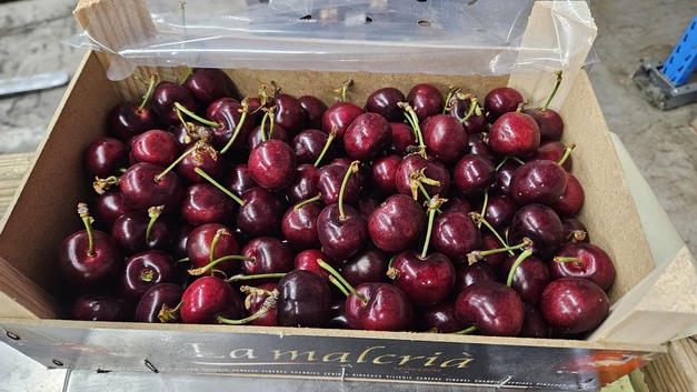 Currently, apricots are priced at around 13-14 euros. Peaches and nectarines are fetching prices between 11 and 12 euros. Marni Fruit has only received a limited supply of paraguayos, which are sold at 17-18 euros for 5 kg. The firm Cerima cherries, size 30+, are priced between 55-60 euros for 5 kg. Other cherries, in sizes 26+, 28+, and 30+, are sold for 7, 8, and 10 euros, respectively.