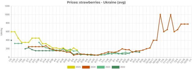 Despite the current price reduction, strawberries continue to sell at an average of 45% more than the same period last year in Ukraine.