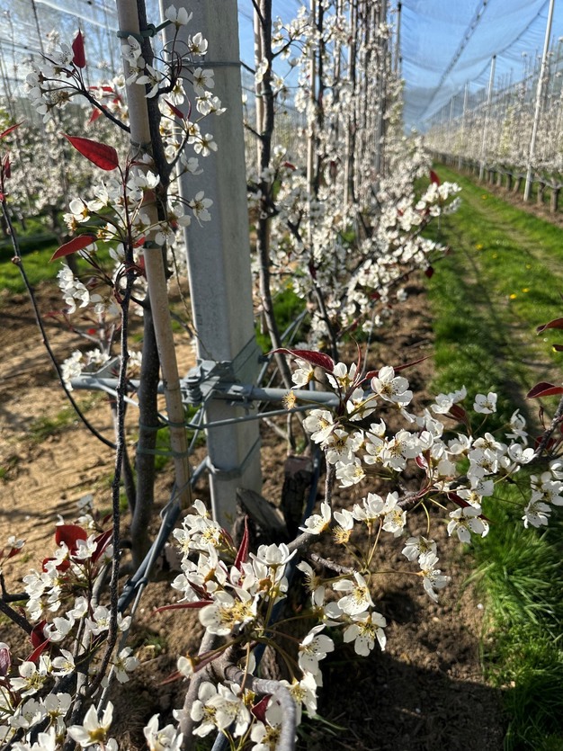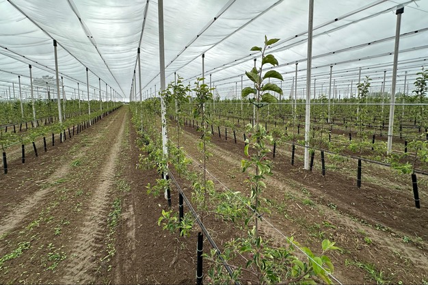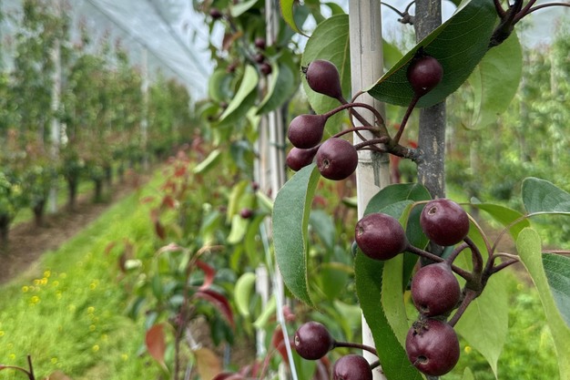 These kinds of resistant, less scab-sensitive varieties are becoming increasingly important for the organic farm. "It's simply getting more and more challenging, so we do have to focus on resistant varieties in organic cultivation. Besides Piqa Red, this also includes Qtee pears, for example, and for apples, the new GoodnessMe variety. We planted it this spring, and it's already growing well. Some apples are already hanging on the trees, but we won't see a real harvest until next year. Eventually, the plan is to replace most of the Jonagold trees with GoodnessMe."